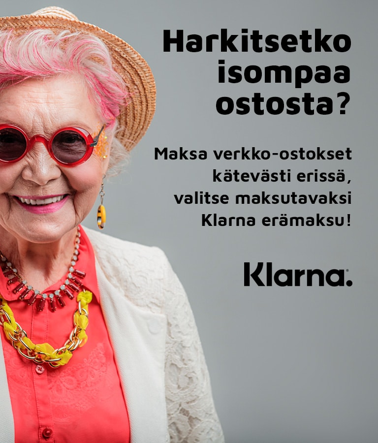 Maksa ostoksesi turvallisesti ja joustavasti Klarnalla. Voit valita maksutavaksi ostoskorisi loppusummasta riippuen joko Klarna laskun, osamaksun tai suoramaksun.