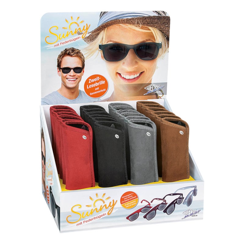 SUNNY aurinkolukulasien sävytetyt linssit suojaavat silmiäsi kirkkaassa auringonvalossa. Muovilinsseissä on suodatustaso 3 (EN ISO 12312-1 DIN: 2013) ja ne tarjoavat 100 % UV-suojan.
