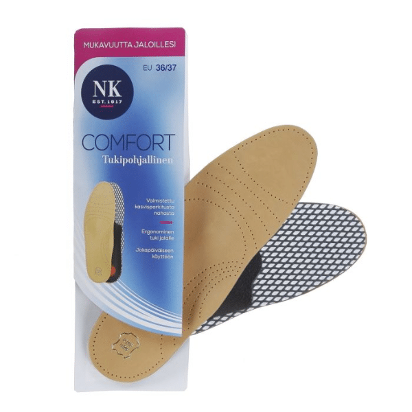 Ortopedinen tukipohjallinen nahkainen NK Comfort on ergonominen ja jalkojen hyvinvointia lisäävä pohjallinen.