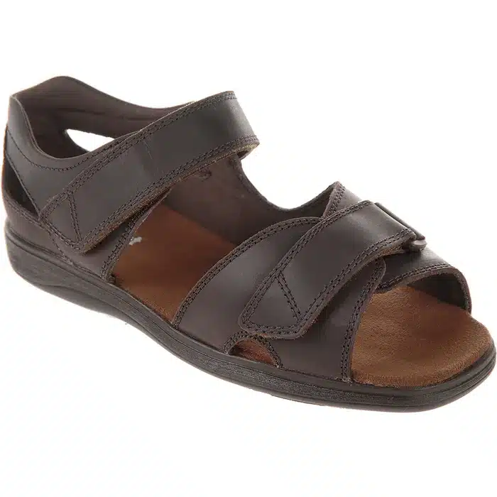 Näillä sandaaleilla voit kävellä koko kesäisen päivän ilman huolia. Sandaalissa on suljettu kantapää extra tukea varten sekä iskua vaimentava pohja, joka pitää jalan iloisella mielellä koko päivän ajan. Suljettu kantapää ei tuo pelkästään tukea ja mukavuutta kantapäähän vaan myös nilkkaan. Sandaali sopii monille erilaisille jaloille tarrakiinnityksen ansiosta. Tarrat saa avattua kokonaan, jolloin jalan voi helposti asettaa päälle ja tarrat sijoittaa oman jalan muodon mukaan. Tämä sandaali sopii jokaiselle, olipa jalka turvonnut, leveälestinen tai vasaravarpaasta kärsivä. Miesten leveälestinen sandaali Bingley sopii kuumillekin kesäpäiville sen hengittävän sisäpuolelle vuoratun materiaalin ansiosta.