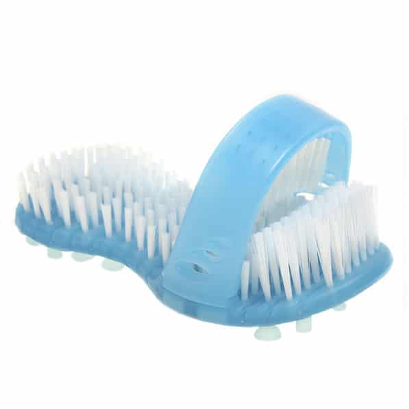Suihkusandaali jalkapesurin avulla jalkojen pesu on tehokasta ja miellyttävää. Sandaali kiinnittyy kylpyhuoneen lattiaan pohjassa olevien imukuppien avulla, jolloin jalkaa on helppo hangata harjaksia vasten.