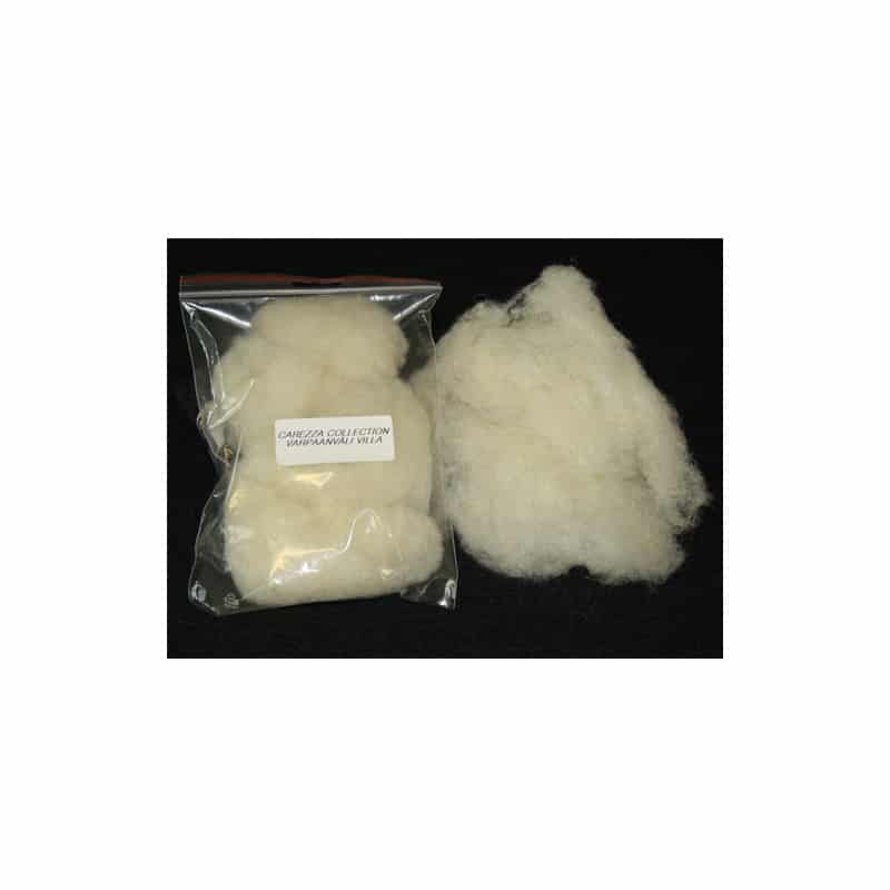 Pakattu muovipussiin. Yhdessä pussissa on noin 20g villaa.