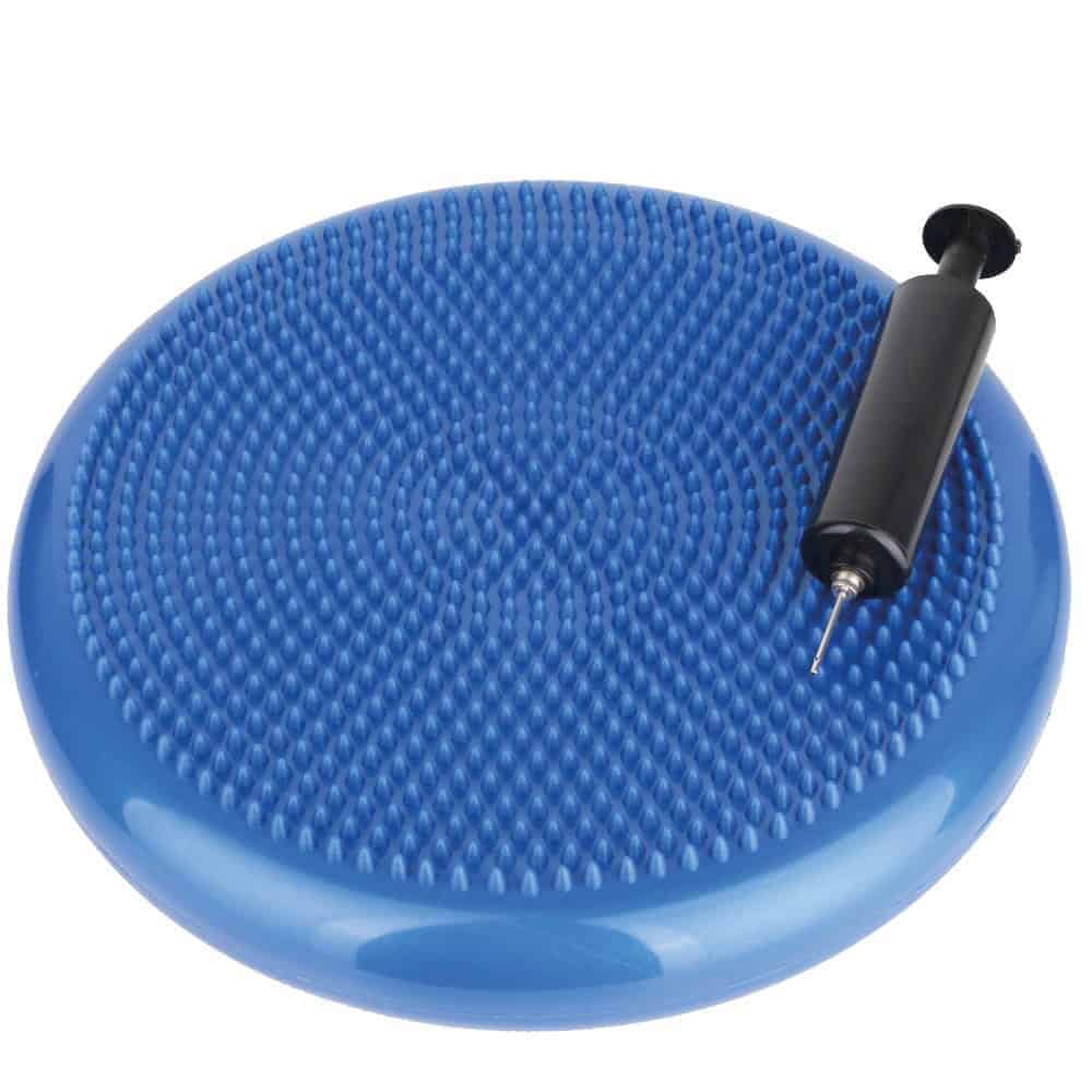 Tasapainotyyny pumpulla sininen tukee selkälihasharjoittelua ja dynaamista istumista. Tasapainon kehittämiseen ja vahvistamiseen. Selkäkivun ja jäykkyyden lievittämiseen. Asetetaan tuolin istuimen päälle ja tasapainotyynyn päällä keinuminen pitää keskivartalon pienessä liikkeessä. Voidaan laittaa myös lattialle ja tasapainoilla seisten tyynyn päällä. Dynaaminen istumine ja seisominen pitää yllä välilevyjen aineenvaihduntaa. Mukana pumppu.