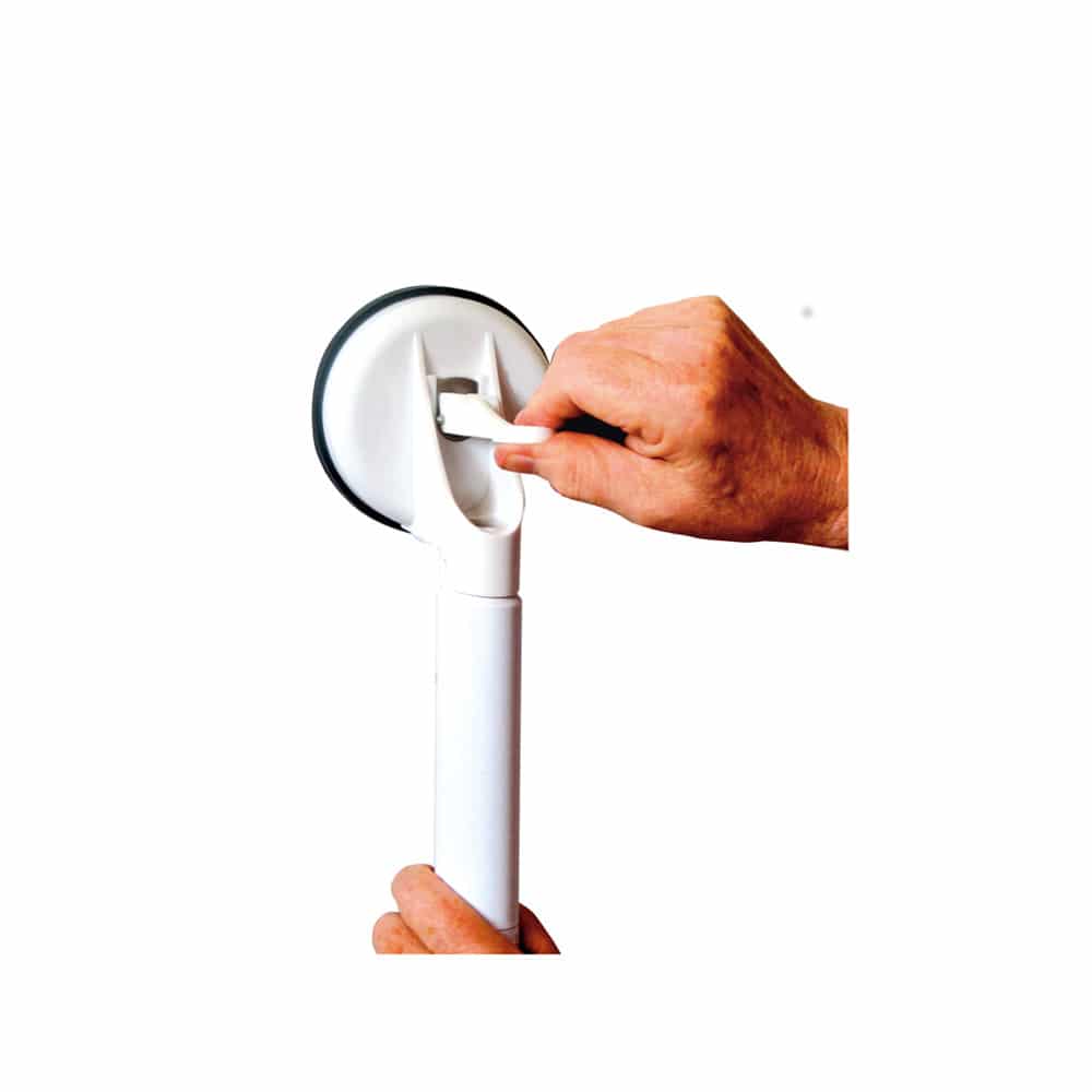 Tukikahva Solido sopii käytettäväksi kotona ja se on helppo irrottaa ja ottaa mukaan tarvittaessa. Kiinnittyy voimakkaalla imukupilla kaikkiin sileisiin pintoihin kylpyhuoneessa. Vetolujuus 70 kg. Imukupin halkaisija 12 cm.