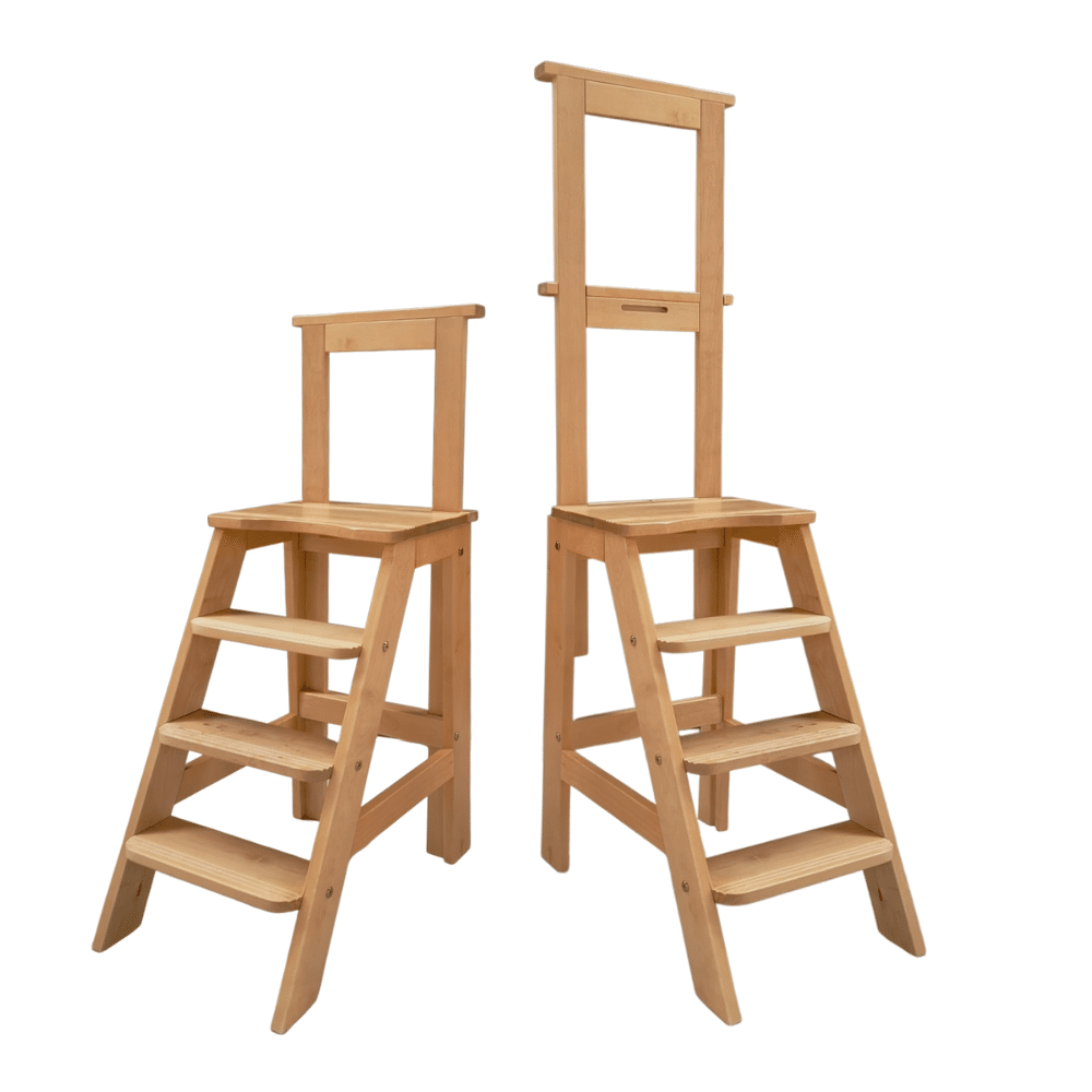 Zorbaksessa on ylätason lisäksi kolme leveää askelmaa, joissa kaikissa pitoa lisäävät urat. Zorbaksen askelmat ovat 15 cm välein, minkä ansiosta sitä on helppo käyttää. Täyspuinen turvajakkara Zorbas valmistetaan massiivikoivusta.