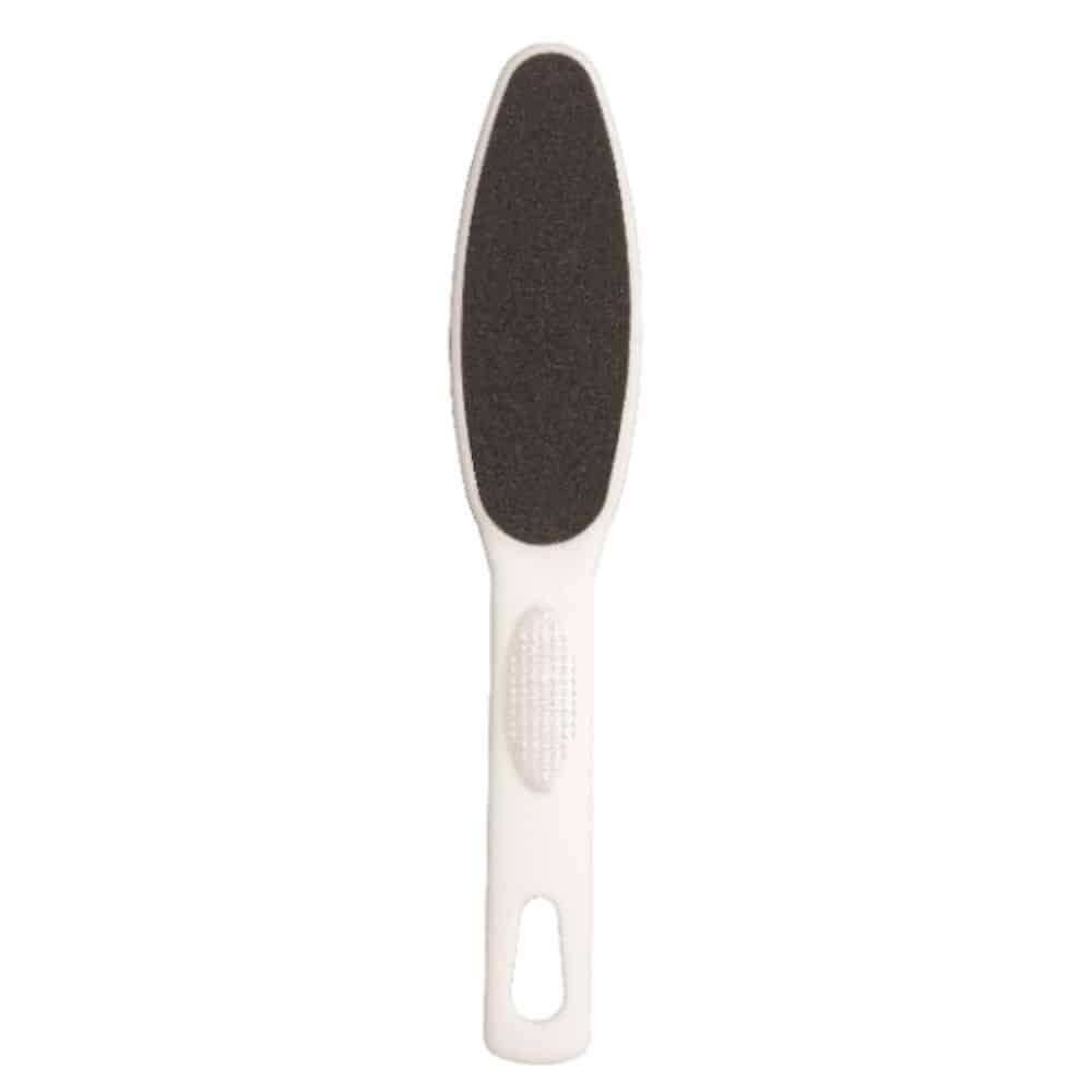 Jalkaraspi 96031 on kaksipuolinen raspi, missä on eri karheudet eri puolilla. Puhdistus juoksevan veden alla. Pituus 23 cm.
