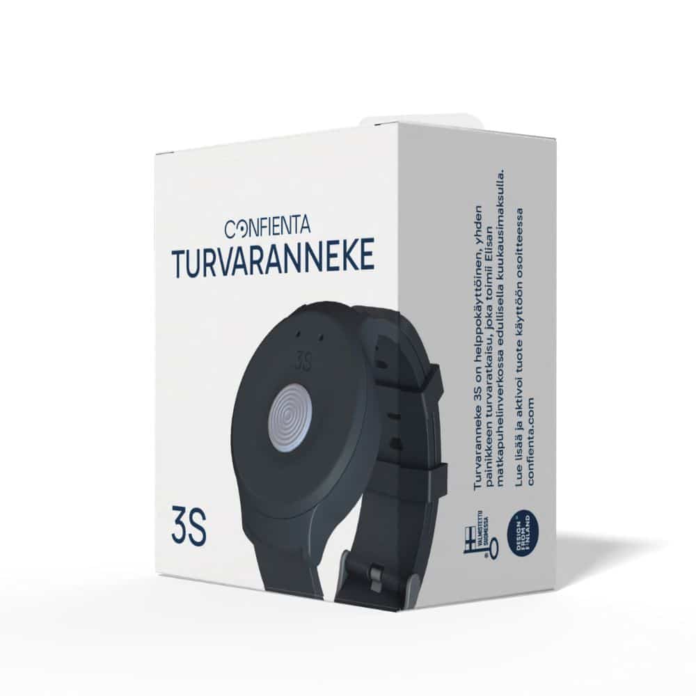 Turvaranneke 3S Confienta on markkinoiden helpoimmin käytettävä turvaranneke, joka toimii itsenäisesti ilman lisälaitteita niin sisällä kuin ulkona. Laite on suihkunkestävä, joten sitä ei tarvitse riisua kuin latauksen yhteydessä. Akunkesto jopa kolme viikkoa.