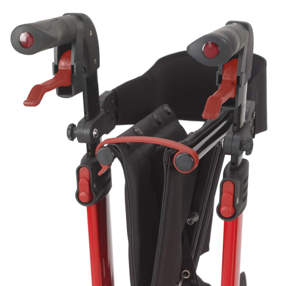 - Mukana kiinnityspidike, joka pitää rollaatorin koossa, kun se on taitettu kasaan