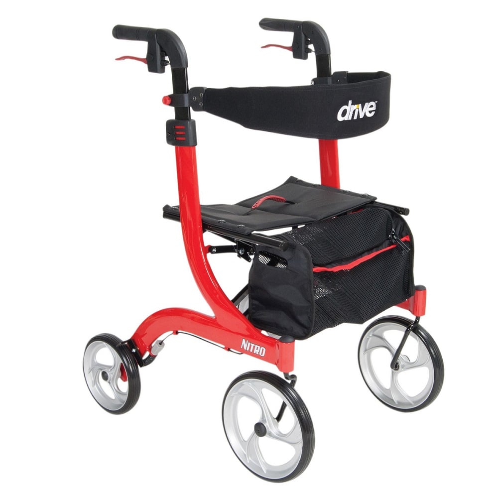 Rollaattori Nitro M on tyylikäs alumiinirunkoinen kävelytuki. Alumiinirunko tekee siitä kevyen käsitellä eri tilanteissa ja samalla kestävän. Isot etupyörät helpottavat liikkumista erilaisilla alustoille ja maastossa. Muotoilunsa ansiosta rollaattori on helppo säätää sopivaksi useammallekin eri käyttäjälle. Hyvä malli myös pitkälle henkilölle.