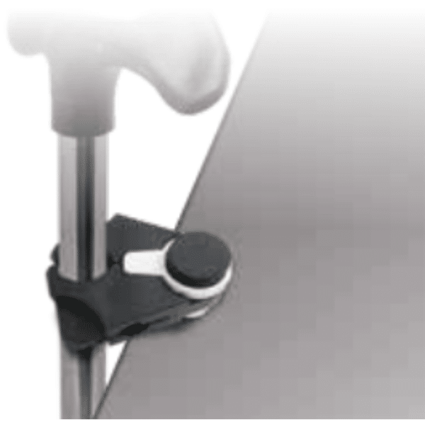 Monilla kävelykepin käyttäjillä on ongelmana kepin asettaminen alas, kun tarvitsee molempia käsiä esim. kaupan kassalla. Kävelykepinpidike klipsillä saat kepin nojaamaan tasoa vasten ilman, että tarvitsee murehtia kepin kaatumisesta. Klipsi on helppokäyttöinen ja kätevä apuväline jokaiselle keppiä käyttävälle. Materiaali: muovia.