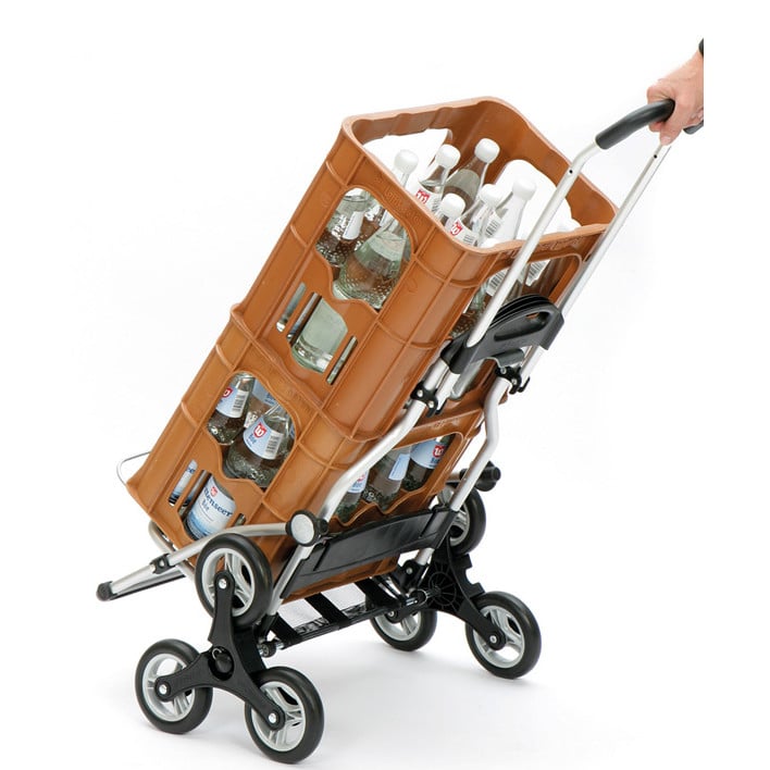 Ostoskärry Kiipijä porrasmalli Andersen sopii hyvin sellaiselle käyttäjälle, joka joutuu kulkemaan paljon portaissa. Kiipijän kolmen pyörän ratkaisu auttaa vetokärryn kulkemista vaivattomasti portaita pitkin ylös tai alas.