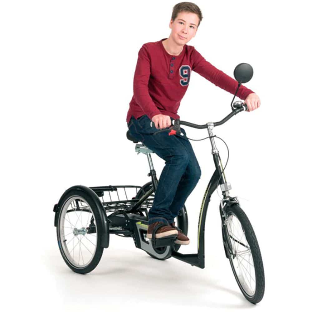 Kolmipyörä Freedom 3-vaihteinen on ihanteellinen terapiapyörä nuorille ja pienille aikuisille. Tämä kolmipyörä sopii käytettäväksi sellaiselle henkilölle, jolla on halu päästä pyöräilemään, mutta tarvitsee lisätukea. Pyörä pyörii hyvin sekä kaupunkiajossa että maaseudulla. Satula sekä ohjaustanko ovat korkeussäädettäviä käyttäjän pituuteen sopivaksi. Runko on madallettu helpottamaan päälle menemistä ja poistumista. Kolmipyörä Freedom 3-vaihteinen on V-jarrut sekä käsijarrut. Takana on suuri metallinen kuljetuskori, johon saat helposti tavaroita. Takakori jaksaa kantaa 25 kg verran. Pyörässä on kolme vaihdetta: alamäki, tasainen ja ylämäki.