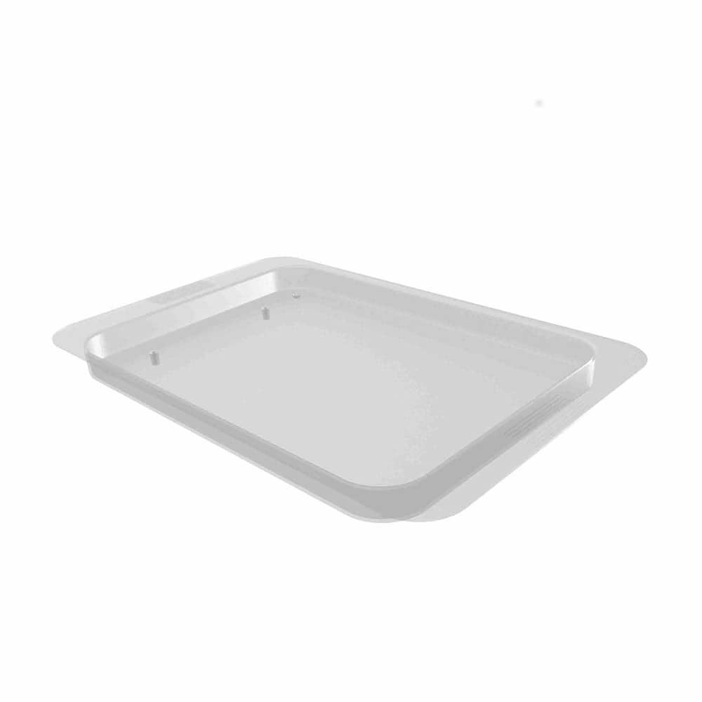 Perusmalli tarjotin, joka sopii useimpiin rollaattoreihin. Kirkasta läpinäkyvää muovia.