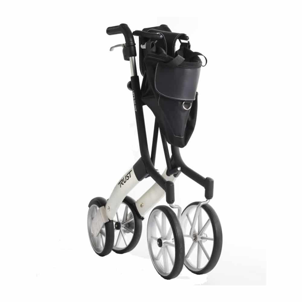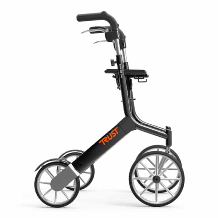 Pehmeät, ergonomisesti muotoillut ja luistamattomat työntökahvat ovat portaattomasti korkeussäädettävät käyttäjän yksilöllisten tarpeiden mukaan. Rollaattori Let’s Go Out saa helposti kasaan yhdellä kädellä ja kokoontaitettuna se pysyy itsenäisesti pystyssä. Tämä rollaattori kävelyteline mahtuu erittäin pieneen tilaan, joten se on helppo pakata autoon. Kädensijat ovat luistamatonta, pehmeää kumia ja jarrukahvoissa on sekä turvalliset käyttöjarrut että lukittavat seisontajarrut. Istuin on miellyttävän tuntuista, tyylikkäästi muotoiltua nahkajäljitelmää.