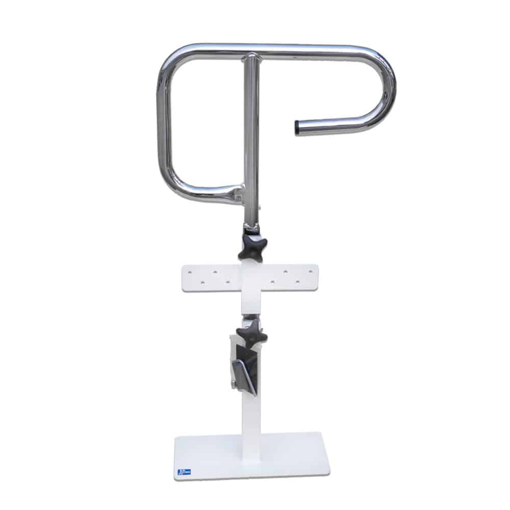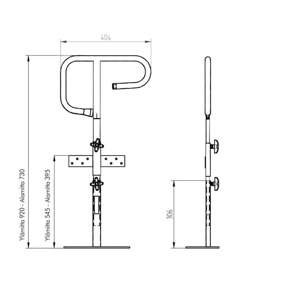 Nousutuki ruuvikiinnitys kääntyvä malli lattiatuella sopii lähes kaikkiin puulaitaisiin sänkyihin. Tuki kiinnitetään kahdeksalla ruuvilla tai läpipultilla, riippuen sängynlaidan paksuudesta. Noustuki on erittäin helppo kiinnittää, varastoida ja kuljettaa ja siinä on portaaton korkeussäätö. Tuki on mahdollista käääntää kolmeen eri asentoon kätevästi ilman työkaluja. Lattiatuen säädössä sormiruuvi. Tuen yläosa on kromattua terästä, laitakiinnitysosa ja jalka valkoiseksi maalattua terästä. Käyttäjän max.paino 150 kg. Tuote ei sovellu moottoroituihin sänkyihin kiilautumisvaaran vuoksi.