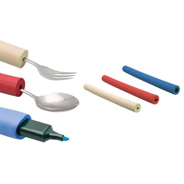 Suunniteltu paksuntamaan ruokailuvälineen ulkohalkaisijaa pehmeällä vaahtoputkella. Ihanteellinen henkilöille, joilla on nivelreuma tai heikko puristusvoima. Putki liukuu helposti useimpiin välineisiin ja lisää kahvan paksuutta, tarjoten näin paremman otteen.