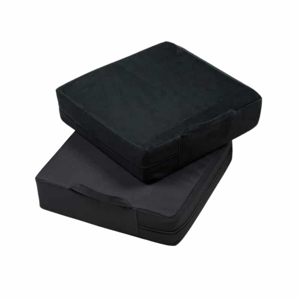 Koroketyyny 10cm musta muovitettu polyester auttaa nostamaan tuolin istuinkorkeutta, kun tuolin korkeus ei riitä. Kantokahvallinen irrotettava päällinen muovitettua polyesteria (inkontinenssipäällinen) suojaa tyynyä. Täyte puristettua rouhetta, joka pitää hyvin muotonsa. Tyynyn etureuna pehmeää superlonia. Pohjassa liukumista estävät erikoispitonauhat.