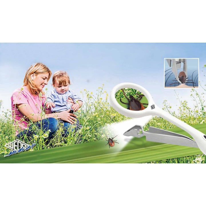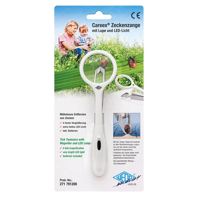 Punkinpoistaja suurennuslasilla ja valolla Careex / Quickex sopii niin isojen kuin pienten punkkien poistamiseen ihmisiltä ja lemmikeiltä. Niillä näkee poistaa myös tikut ja lasinsirut hämärästi valaistuissa tiloissa.