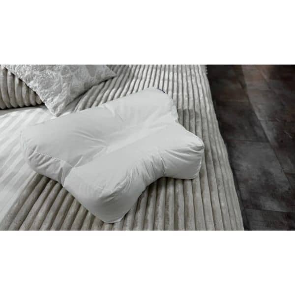 Uniapneatyyny 50x60cm Uniquu ergonominen tyyny on sunniteltu käytettäväksi CPAP-laitteen kanssa. Pallokuitutäytteisen tyynyn kaikki lokerot ovat muokattavissa itselle sopiviksi. Mukaan tuleen 100g irtopussi pallokuitutäytettä tyynyn muokkaamiseen. Sopii 50×60 tyynyliinaan. Uniapneatyyny 50x60cm Uniquu on markkinoiden ensimmäinen tyynymalli, jossa on huomioitu myös tyynyn niskaosan korkeus, erikoismuotoilu ja lokerointi. Muotoilu sopii niin selällään kuin kyljellään nukkuville CPAP-laitteen käyttäjille. Sivujen muotoilu antaa maskille tilaa, eikä maski vuoda niin helposti kylkiasennossa nukuttaessa. Niskaa tukeva muotoilu. Sivulla olevat ”siivekkeet” tukevat sopivasti kyljellään nukkujaa painamatta maskia pois paikoiltaan. Korkeuskaitaleen ansiosta niskaosasta ei tule liian kova, vaikka se olisikin säädetty korkeaksi. Eri alueet ovat muokattavissa sopivaksi juuri sinulle.