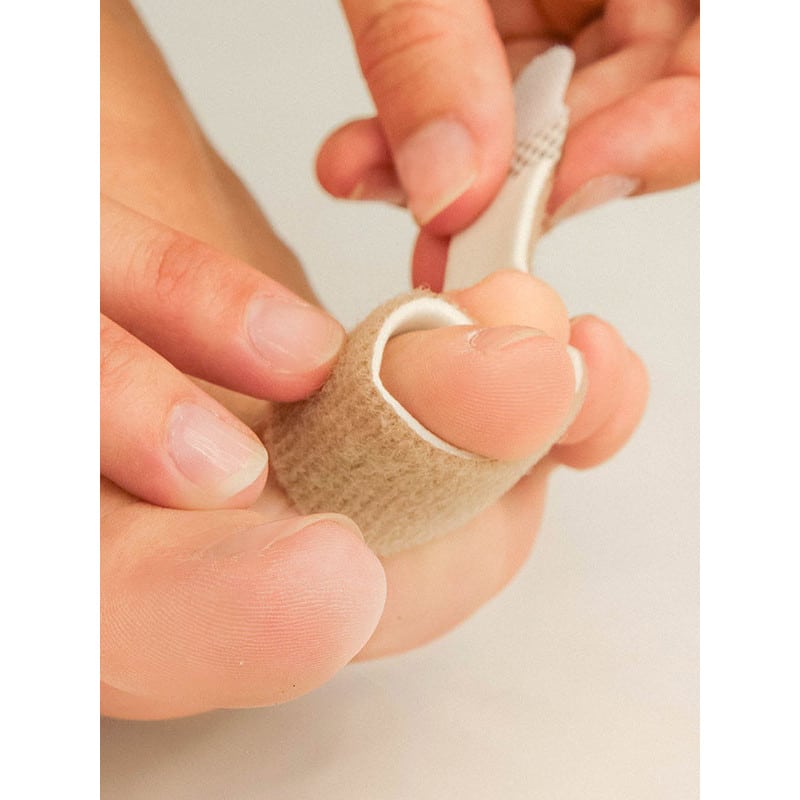 Pujota lenkki oikaisua vaativan varpaan ympärille ja vedä tarranauhalla kiinni viereisen varpaan alapuolelta. HUOM! Käytä max 18h/vrk.