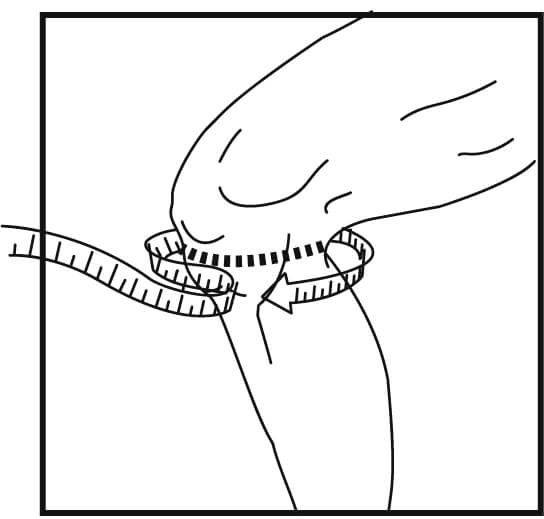 Mittaa polven ollessa koukussa ympärysmitta heti polvilumpion alapuolelta.