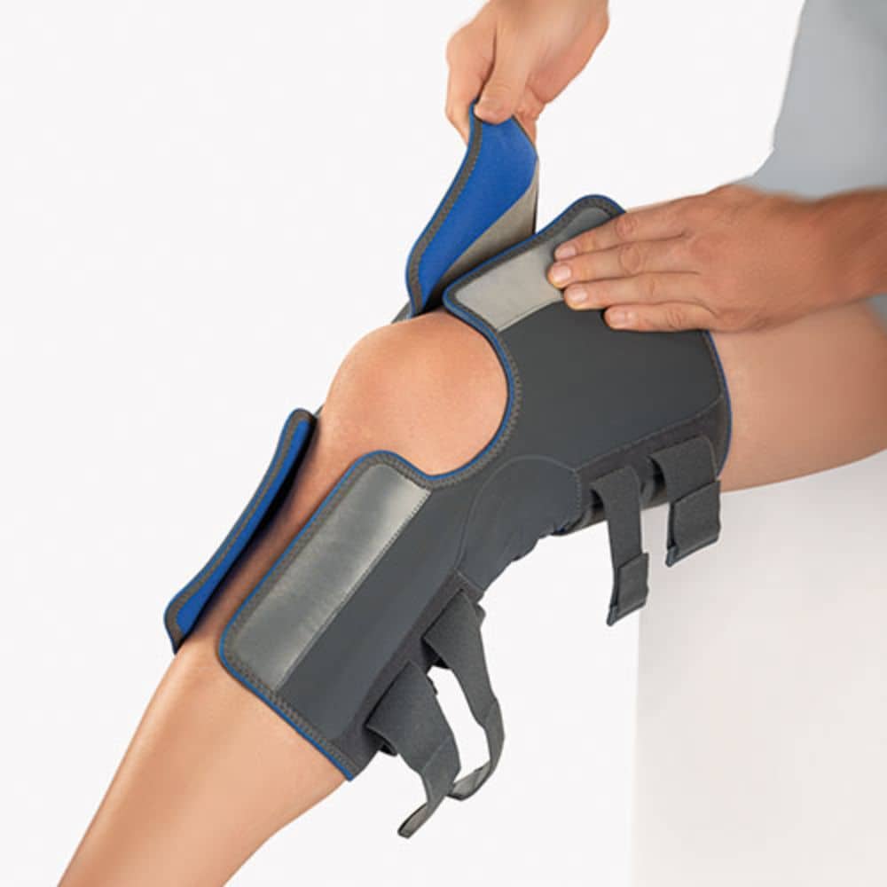 Innovatiivinen säädettävä niveljärjestelmä perustuu polvinivelen luonnolliseen rullaavaan ja liukuvaan liikkeeseen, mikä takaa optimaalisen liikerajoituksen ja käyttömukavuuden. Neljä ympäri kiertävää tarranauhaa takaavat turvallisen ja varman istuvuuden kaiken kokoisille käyttäjille.