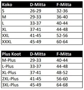 D-mitta n. 15 cm polvitaipeen alapuolelta. F-mitta n. 15 cm polvitaipeen yläpuolelta.