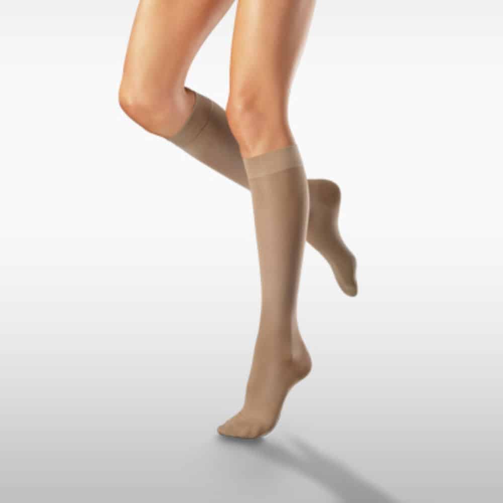 Hoitosukat polvipituus Venosan 4002 AD CCL2 umpikärki resorireuna on pehmeä ja hengittävä polven alapuolelle jäävä lääkinnällinen tukisukka, joka tarjoaa tehokkaan tuen samalla kun se tuntuu miellyttävältä iholla. Joustavan materiaalin ansiosta sukka on suhteellisen helppo pukea. Leveä ja joustava resorireuna tuntuu miellyttävältä eikä purista. Umpikärkinen malli tuo lisämukavuutta erityisesti herkkäjalkaisille.