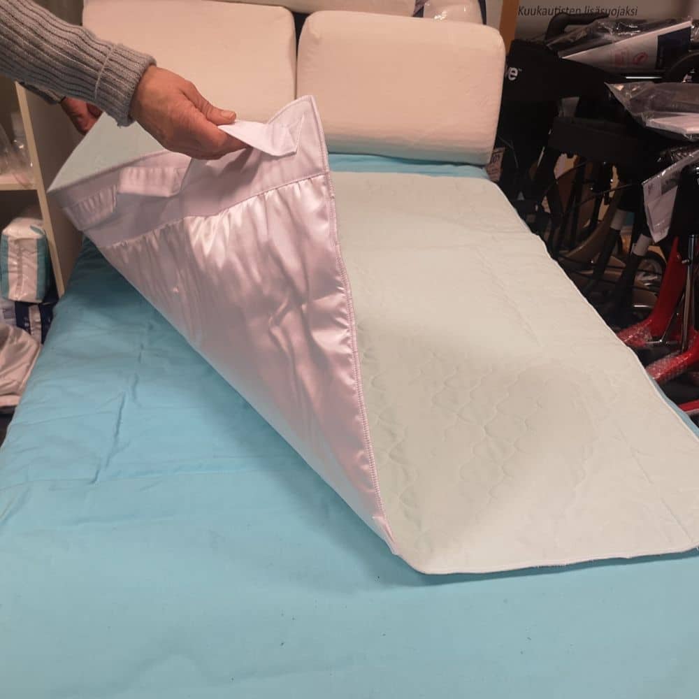 Kätevä monitoimilakana vuodepotilaan hoidon avuksi. Käytetään siten, että vuodesuoja on yläpuolella ja liukulakana sekä kahvat alapuolella. Kahvat ja liukuva alapuoli auttavat henkilön kääntämistä ja siirtämistä. Vuodesuojaa voi käyttää myös pelkkänä liukulakanana.